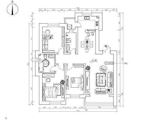 伯爵源筑三居室117㎡中式风格装修效果图