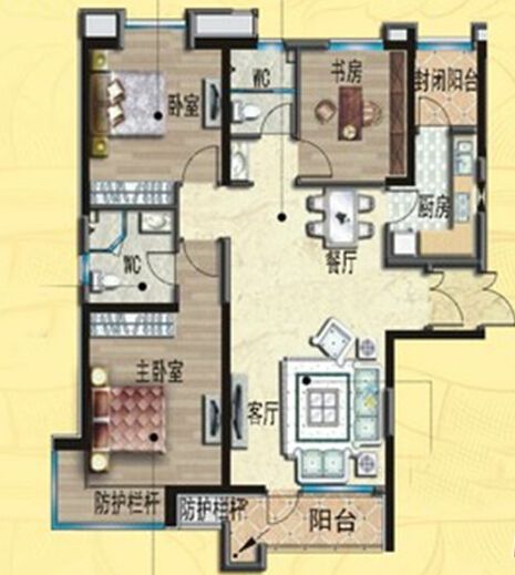 碧桂园太阳城三居室131㎡欧美风情装修效果图