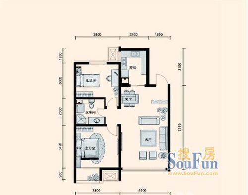 华润置地凯旋门二期二居室96㎡简欧风格装修效果图