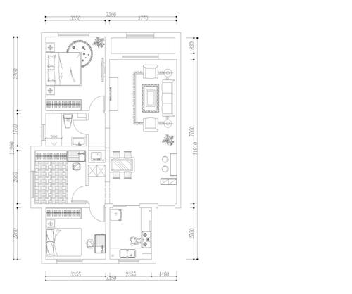 金地檀溪门市二居室112㎡现代简约装修效果图