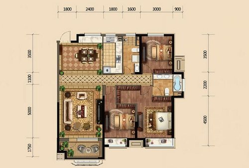 金地悦峰三居室133㎡欧美风情装修效果图