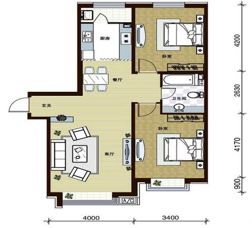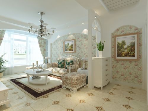 金辉湖畔里三居室97㎡田园风格装修效果图