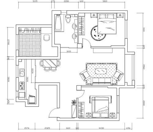 金辉湖畔里三居室99㎡田园风格装修效果图