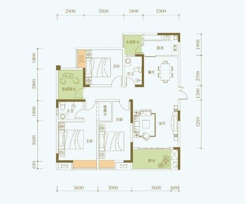 金辉湖畔里三居室103㎡现代简约装修效果图