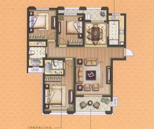 金辉湖畔里三居室120㎡现代简约装修效果图
