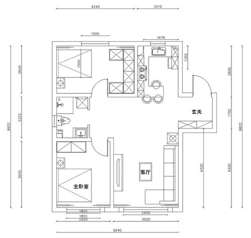 金辉湖畔里二居室71㎡现代简约装修效果图