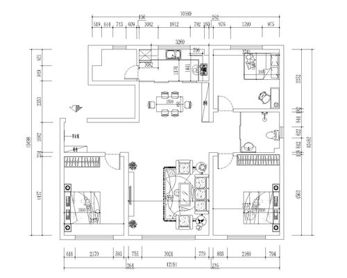 金辉湖畔里三居室103㎡现代简约装修效果图