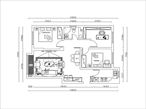 金辉湖畔里二居室86㎡现代简约装修效果图