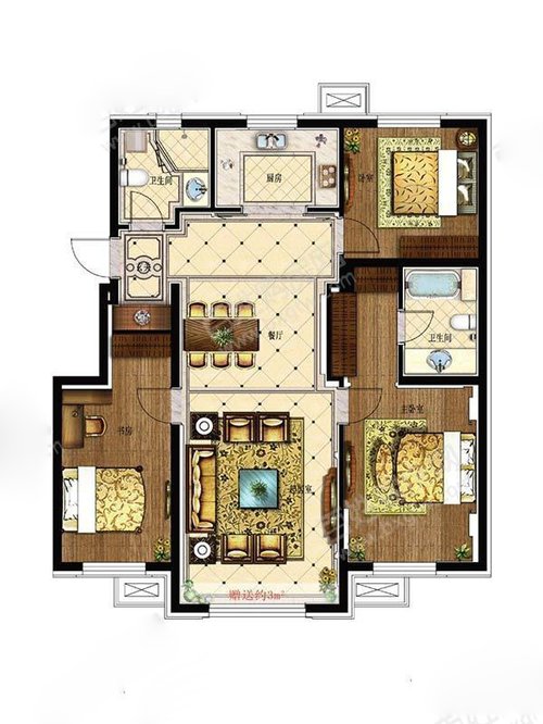 其仕盛和祥三居室99㎡现代简约装修效果图