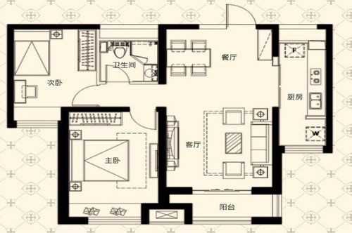 凯怡阳光三期二居室87㎡混搭风格装修效果图