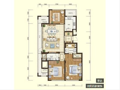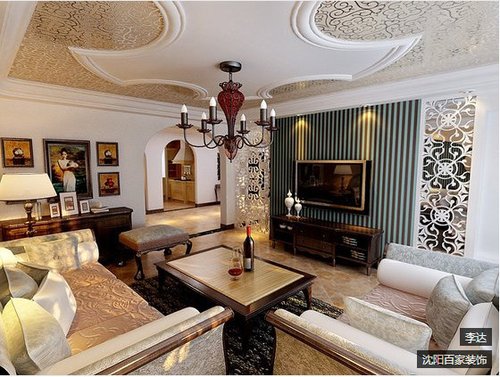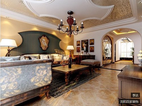 绿城沈阳全运村三居室156㎡欧美风情装修效果图
