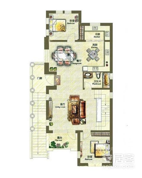 沈阳龙湖滟澜山二居室341㎡简欧风格装修效果图