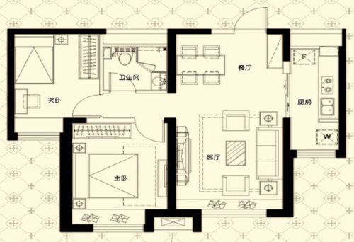 唐轩北廷二居室75㎡地中海风格装修效果图