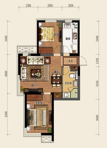 唐轩北廷二居室82㎡地中海风格装修效果图