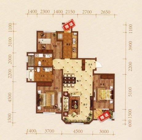 听雨观澜流水别墅三居室131㎡欧美风情装修效果图