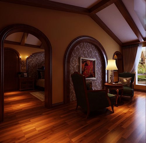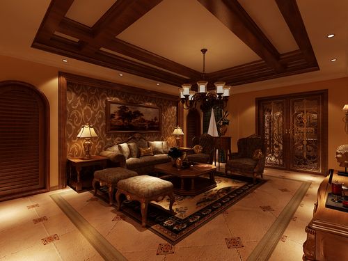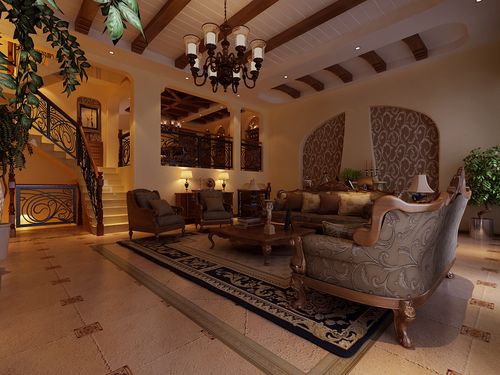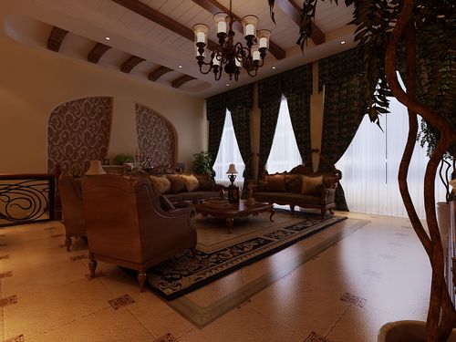 听雨观澜流水别墅四居室330㎡欧美风情装修效果图