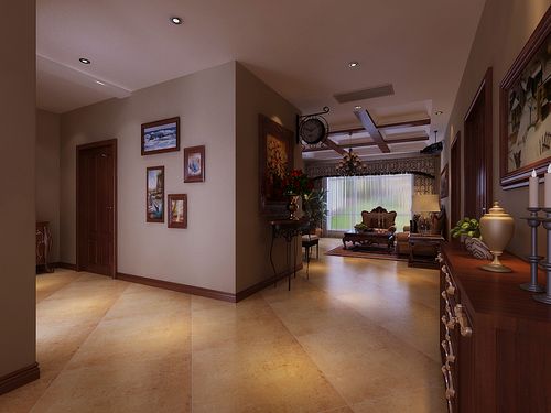 银河丽湾二期丽湾上品三居室127㎡美式装修效果图