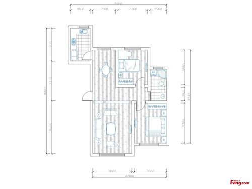 中房上东花墅二居室98㎡混搭风格装修效果图