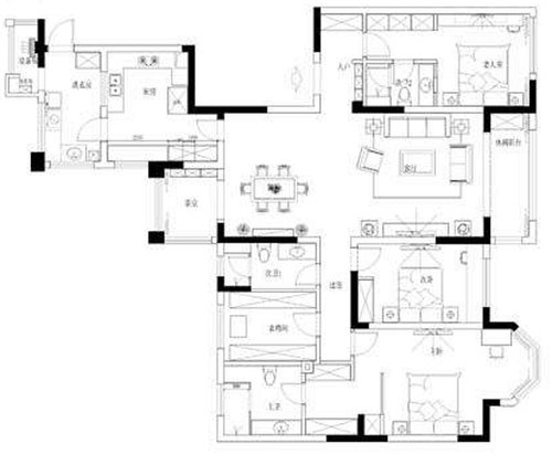 中海御河四居室167㎡中式风格装修效果图