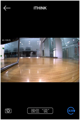 在视频界面的中下方有一个“按住说”的按钮,需要将手指按住该按钮,当屏幕上出现“开启音频”或“开始说话”时手机端即可向设备端语音沟通(该功能类似微信的对讲模式)。总体来讲,音质还是比较清晰,也不存在延迟现象。