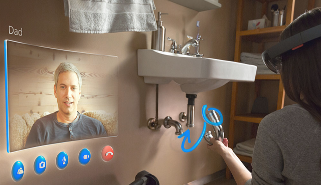 那么,还有什么方式实现智能家居呢?现在,有人把目光转向了微软年初发布的一款穿戴式设备Hololens身上。Hololens是一款全息眼镜,在现实场景中显示全息图像的设备,而这些全息图像是可以被使用者用手势控制和互动的,例如最基本的电脑桌面上可执行任务的图标,再进一步是与虚拟人物的互动,乃至于周围环境的互动等。这款眼镜不同于谷歌眼镜,谷歌眼镜主要是将数字图像从用户视野中排除,而HoloLens则是让用户沉浸在数字环境中;谷歌眼镜更像是一款手机的替代品,瞥一眼就能迅速获得信息,而HoloLens更像是一款PC的替代品。