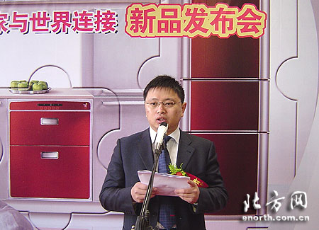 北方网消息:11月4日,海尔在天津举行了U-home成套家电上市活动,标志着海尔U-home成套家电正式与津城老百姓见面。在活动现场,记者亲身体验到了成套家电的智能化和高性能。 | | 天津海尔工贸有限公司总经理张冬在新品发布会上致辞 |