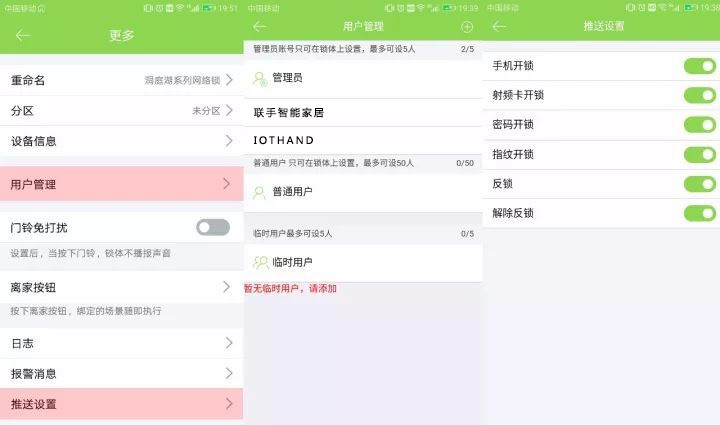 支持手机下发临时密码,可以授权临时密码给亲戚、朋友,并且可以对使用的次数和时间段进行设定。