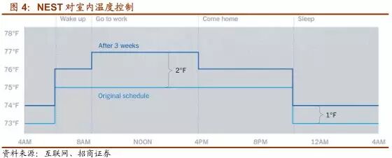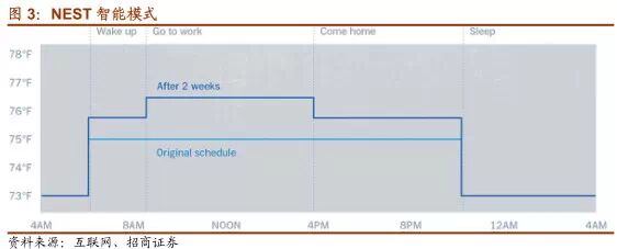 其次,NEST 会根据用户的起床以及回家时间对室内温度进行控制。