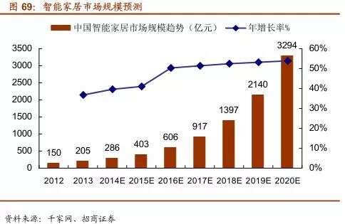1、智能家居市场空间巨大,未来几年能够保持快速稳定的增长