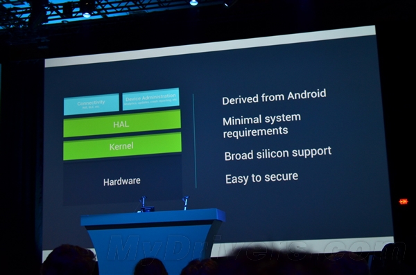 它基于Android开发,但做了高度精简,是一个物联网的底层系统,也支持Wi-Fi、蓝牙等,号称是一个端到端的操作系统,但不知道如何加入设备之中。
