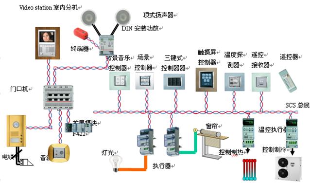 客厅是主人会客的主要场所,也是家居智能化集中体现的产场所,可以完成灯光、电动窗帘、空调(或者是风机盘管)、背景音乐控制。