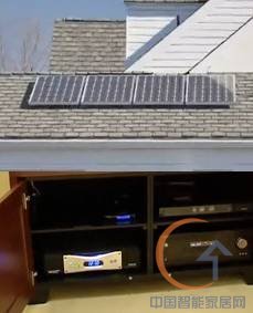 而该套家庭影院最独特的地方是,它同时也包括了屋顶上装设的四面太阳能集电板,通过这个太阳能集电板每小时能够收集 700W 的电力,可以实现在完全不使用传统电力来源的情况下,最好的记录能够持续推动整套家庭剧院长达 19 个小时。