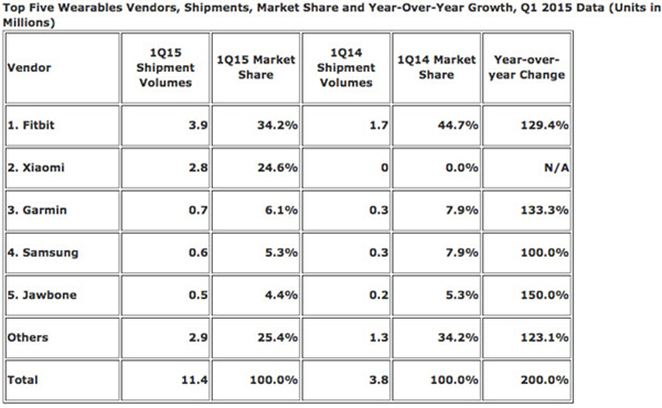 谁是今年第一季中可穿戴产品市场最引人瞩目的厂商?根据 IDC 的说法,是仅靠一款手环打天下的小米。据称他们在上季中占据了全球24.6%的出货量,等于只花了不足一年时间,就爬到了市场第二的位子。目前排在第一的仍是老牌大厂 Fitbit,但他们在第一季中交出的成绩单(出货量390万件),也只是比小米这个「新兵」多出110万件而已。此外,像是 Garmin、三星、Jawbone 这些同业老将,都被小米远远地甩在了身后,而 LG、摩托罗拉、Pebble 这些常常被提及的名字,更是直接被归入了「其它」的档次。小米之所以能取得如此成功,显然跟小米手环的超低定价不无关系。比较遗憾的是在这次的榜单中还无法计入 Apple Watch 这位强有力的后来者。