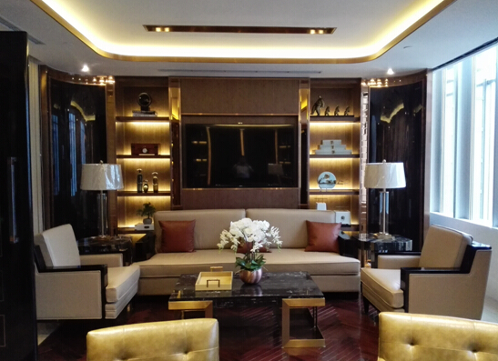 在董事长办公室,SMART51智能家居系统实现智能灯光,电动窗帘,中央背景音乐,影音设备,门禁指纹联动控制等功能;在墙面的多页面液晶智能面板上,可以实现所有室内设备的一对一集中控制与一键场景控制功能。电动窗帘可以按需实现每日定时开关控制。
