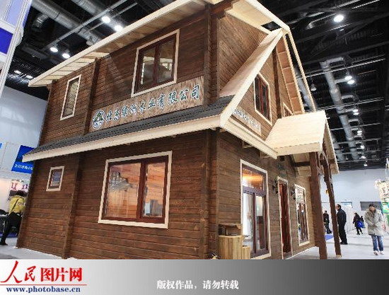 11月14日,第八届中国国际住宅产业博览会上的北京绿洲木业公司的木结构房屋。 版权作品,请勿转载。