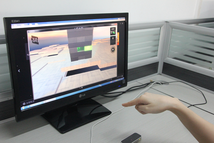 至于游戏方面,小编继续让妹纸把玩一下小游戏。“Block54”游戏是推积木游戏在Leap Motion的改版,利用手势控制,把积木一根一根地推下去,适合多人一起玩耍。